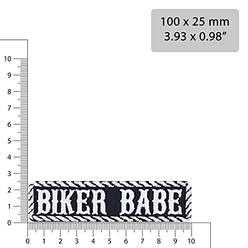 Specification: Lapjes Appliqués Geborduurde “BIKER BABE” Lady Biker Patch – Biker Strijkpatch Motorfiets Cadeau voor Vrouwen – DIY Applicatie voor Jacke/Weste/Jeans | 100x25mm