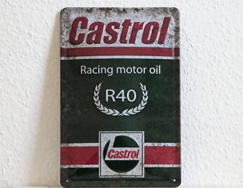 CASTROL Racing Motor Olie-blikken bord – hoogwaardig reliëf retro tankstation bord werkplaats – 30 x 20 cm